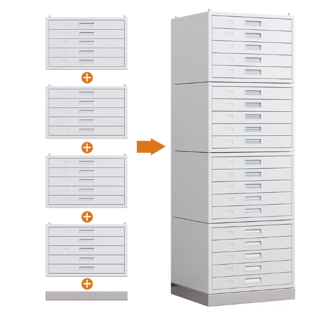 Mô tả: 20 ngăn kéo (bốn phần tầng ghép lại, mỗi tầng năm ngăn kéo, cộng thêm đế).