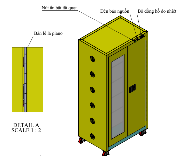 - Trang bị bột chữa cháy: được giải phóng khi xảy ra cháy bên trong tủ.